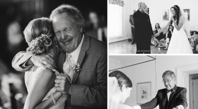 Emoção: pais vendo as filhas vestidas de noiva pela primeira vez