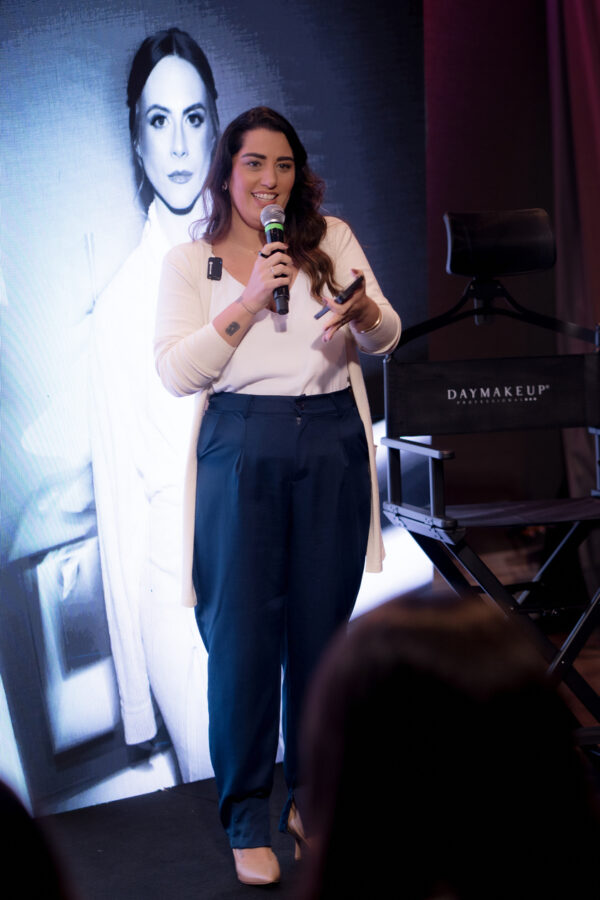 - Gleyci Sassi, ensinando técnicas para uma maquiagem com alta durabilidade e elegante para o grande dia.