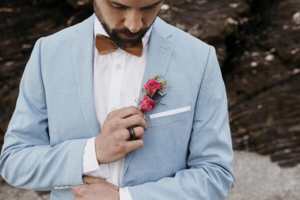 Delicado e ao mesmo tempo estiloso, o terno salmão é perfeito para cerimônias durante o dia ou em casamentos na praia. A tonalidade clara transmite frescor e combina bem com climas tropicais, criando uma proposta descontraída, mas ainda sofisticada.